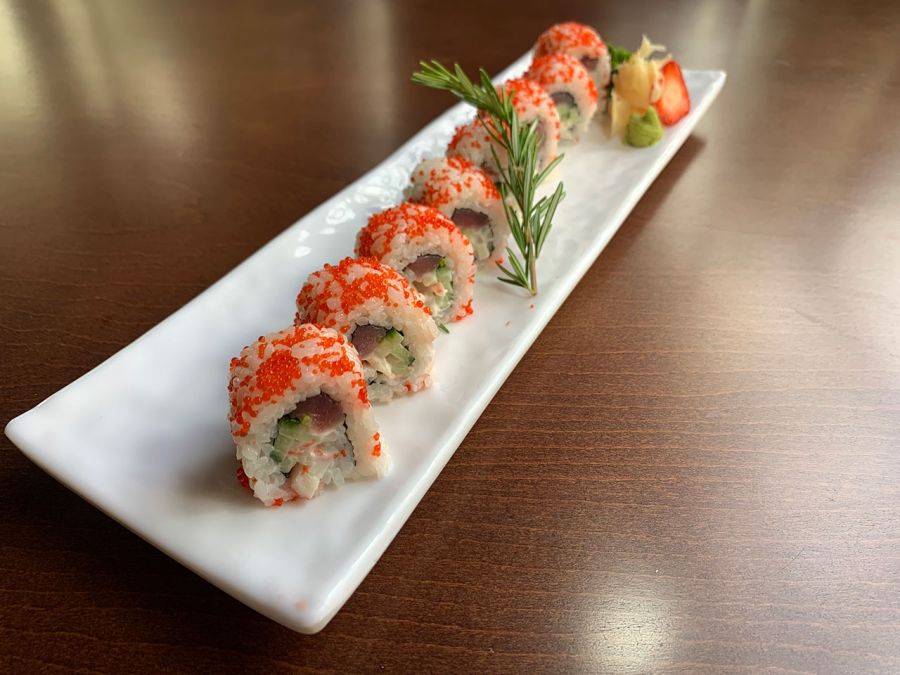 καβούρι, αβοκάντο, αγγούρι, πεπόνι, σουσάμι, τομπίκο